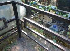Последовательность работы стандартная. Во-первых, сжечь старую краску, во-вторых, зачистить ограду до металла, после покрыть грунтом чистый металл и покрасить черной краской. После покраски убраться на могиле. Далее на фото обожженная краска на ограде.